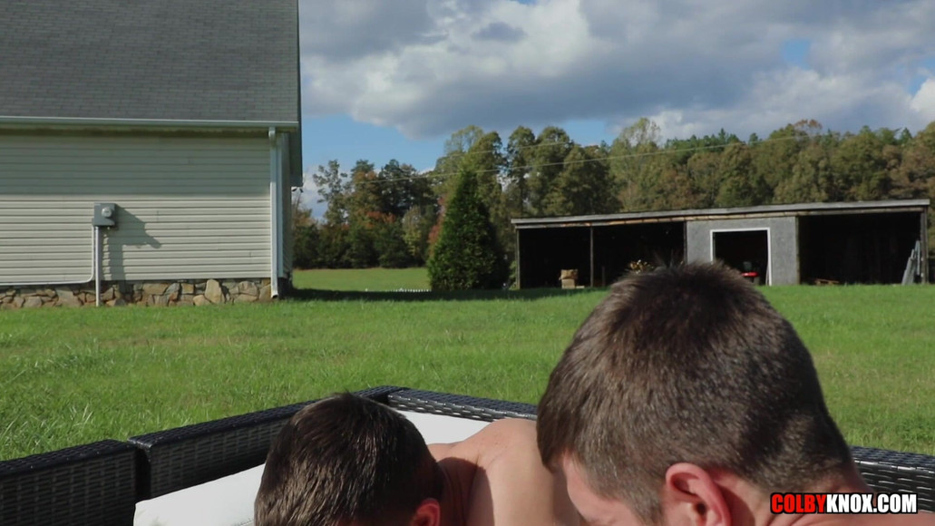 Robin Moore, Colby Chambers and Mickey Knox are all about having fun when they get together and this adult gay porn scene captures that excitement together. Today they have planned out a great afternoon of fucking in the middle of a field. Colby and Mickey live in the country and have a field in their backyard, making this outdoor fantasy a long overdue addition to the site. Mickey has long had a fantasy that involves sitting back and smoking a cigar while he watches his husband make love to another man. Colby is more than happy to fuck hot studs if that's what it takes to make his man happy and let me tell you, Mickey is one happy camper. Robin is thrilled to be the center of attention and soaks up the sun while taking both cocks at the same time. The guys are immersed in hot oral cock sucking action as they take turns sucking each other’s cock. Colby is first to lube his hard cock and have Robin sit on it, taking all seven inches deep inside his ass.